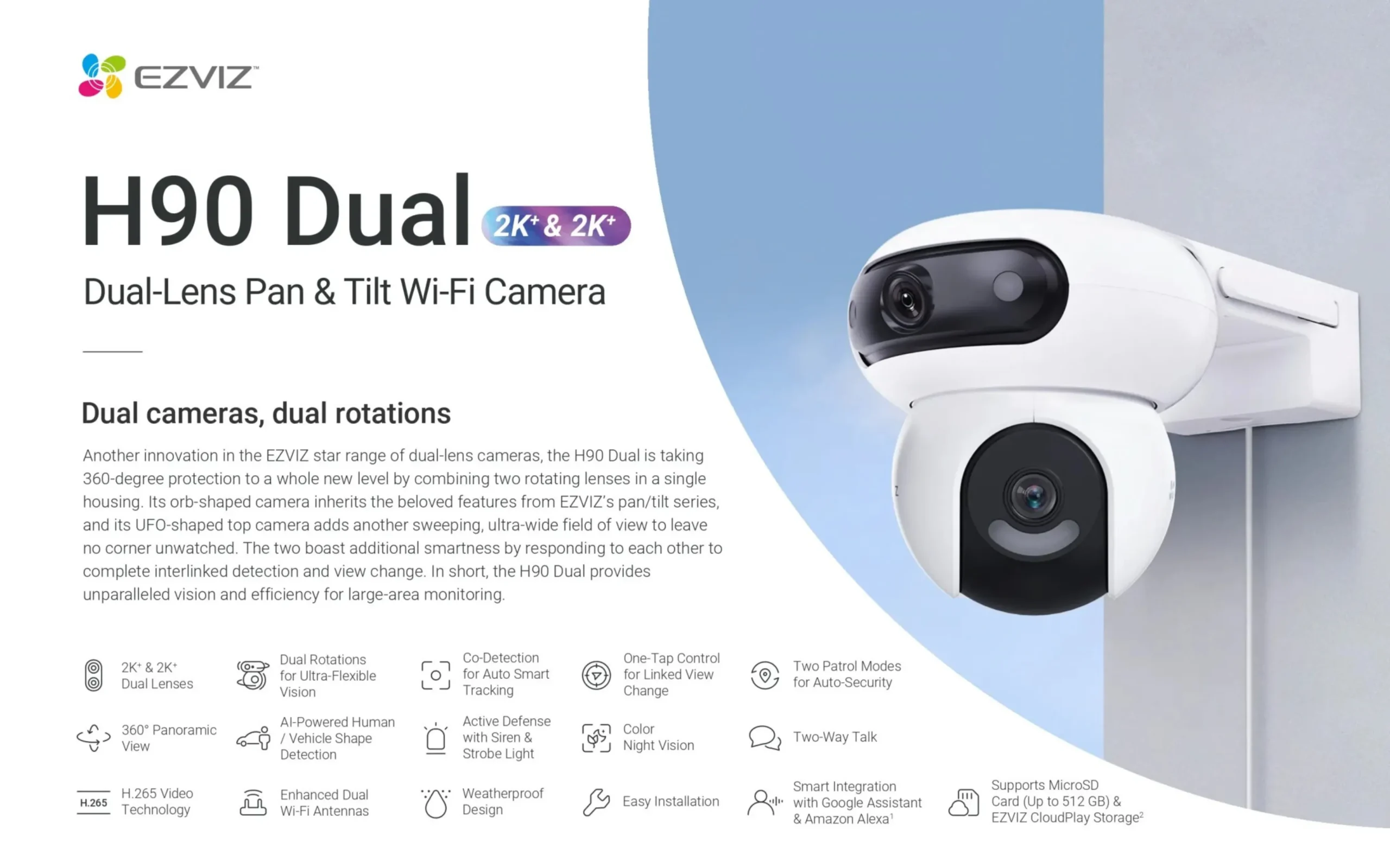 Main Features of the H90 Dual 2K Outdoor Wifi Camera