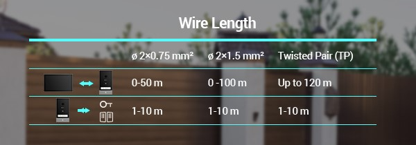 Support 2 wiring ports. 1-10m distance. The intercom panel provides a “dry”-contact connection, without an electric current, to connect to the button for automated gate, gate breaking capacity: 12V / 2A |